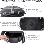 - BOTH SIDES ADJUSTABLE GRILL – This fire pit comes with a double tier grill, the durable heavy duty steel grill can be rotated 360 degrees and secured with screws, it can also be moved up and down to adjust the distance between the food and the fire for better temperature control.