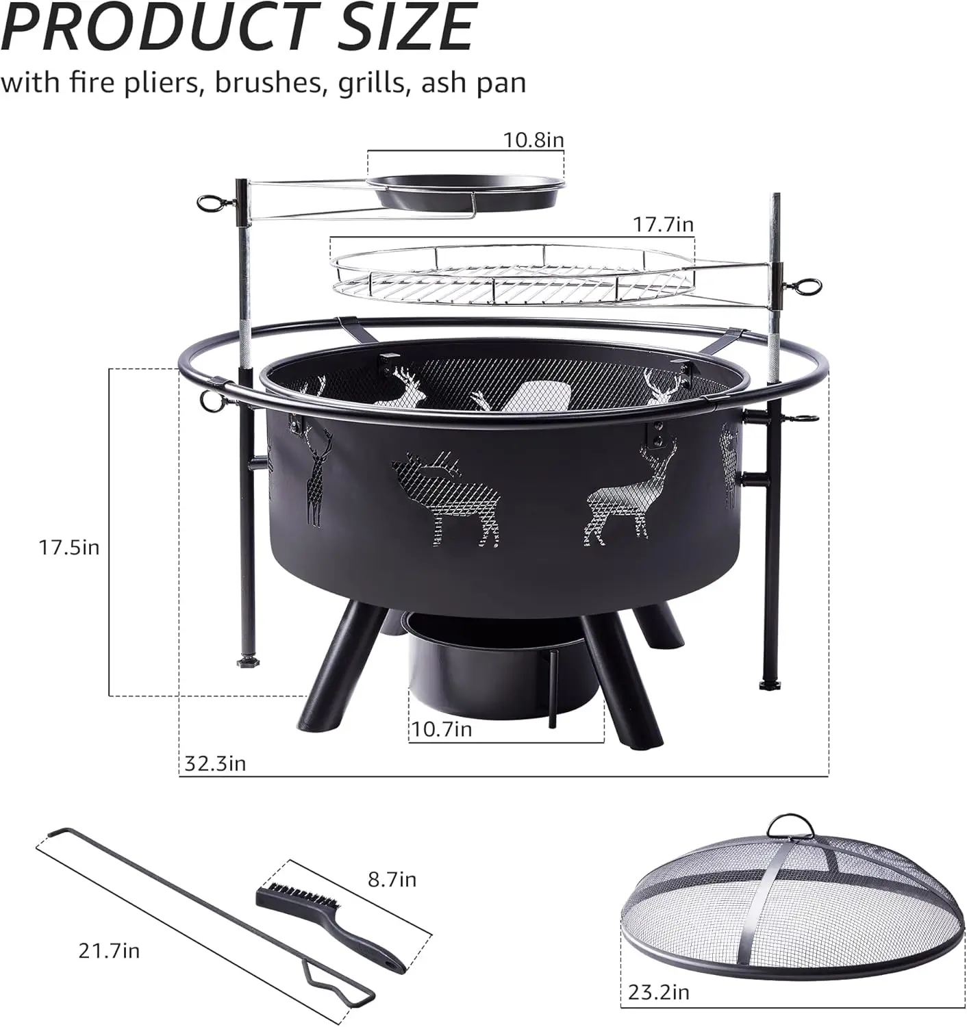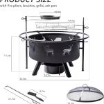 - 2 IN 1 OUTDOOR FIRE PIT – Fire pit size: 32.3 inches in diameter x 17.5 inches deep. Can be used for heating in the winter and outdoor grilling in the summer, the large size fire pit can be used by enough people, perfect for family and friends to have a bonfire in the yard or on the patio and enjoy grilling.