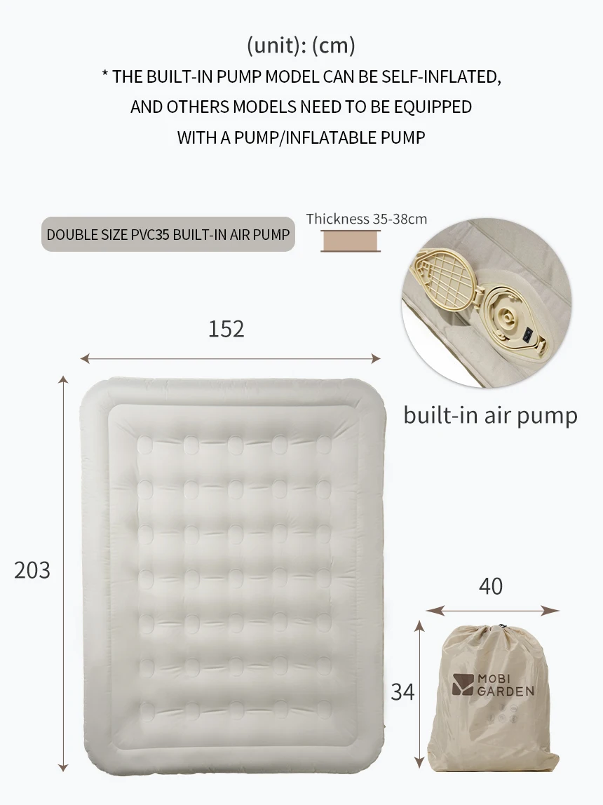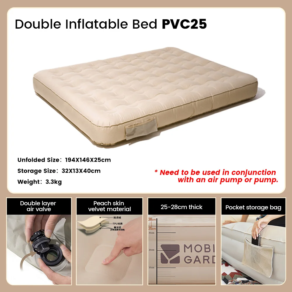 MOBI GARDEN Camping Air Mat Air Bed Portable Peach Skin Fabric PVC Thickness 25cm.
