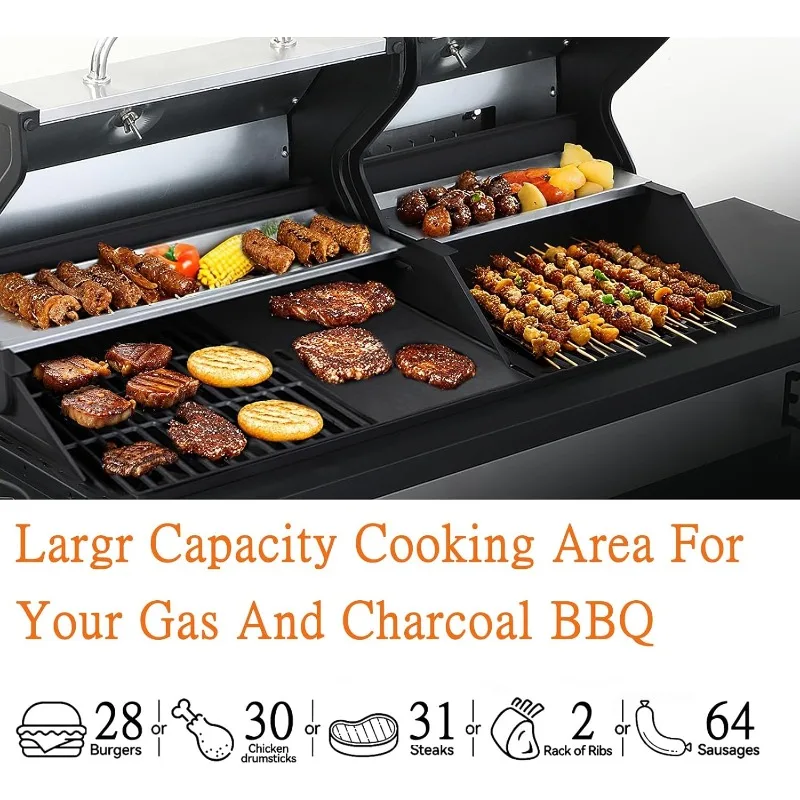 - Perfect for Any Occasion: The Indoor Outdoor Barbecue Grill compact yet spacious design 61.8×21.9×48.6 inches offers ample cooking space for gatherings. The bbq grill has a foldable steel side table 11.4×17.3 inches, stainless steel bottle opener, and tool hooks—ideal for grills outdoor cooking, smoking, searing, or slow cooking. Great bbq grill charcoal,for BBQ parties, outdoor cooking, or as a backup indoor grill with proper ventilation.