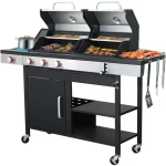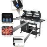 - Durable and Heat Resistant Construction: The propane grill built with the steel firebox and 550°C high-temperature powder coating for long-lasting durability.The outdoor BBQ grill has 2 layer bottom storage shelves to storage your beverages, food ingredients, seasonings.Gas and Charcoal Combo Gril equipped with 2 locking + 2 non-locking wheels for easy mobility, making it perfect for grills outdoor cooking, outdoor kitchens, patio grills, camping grills, and portable propane grilling.