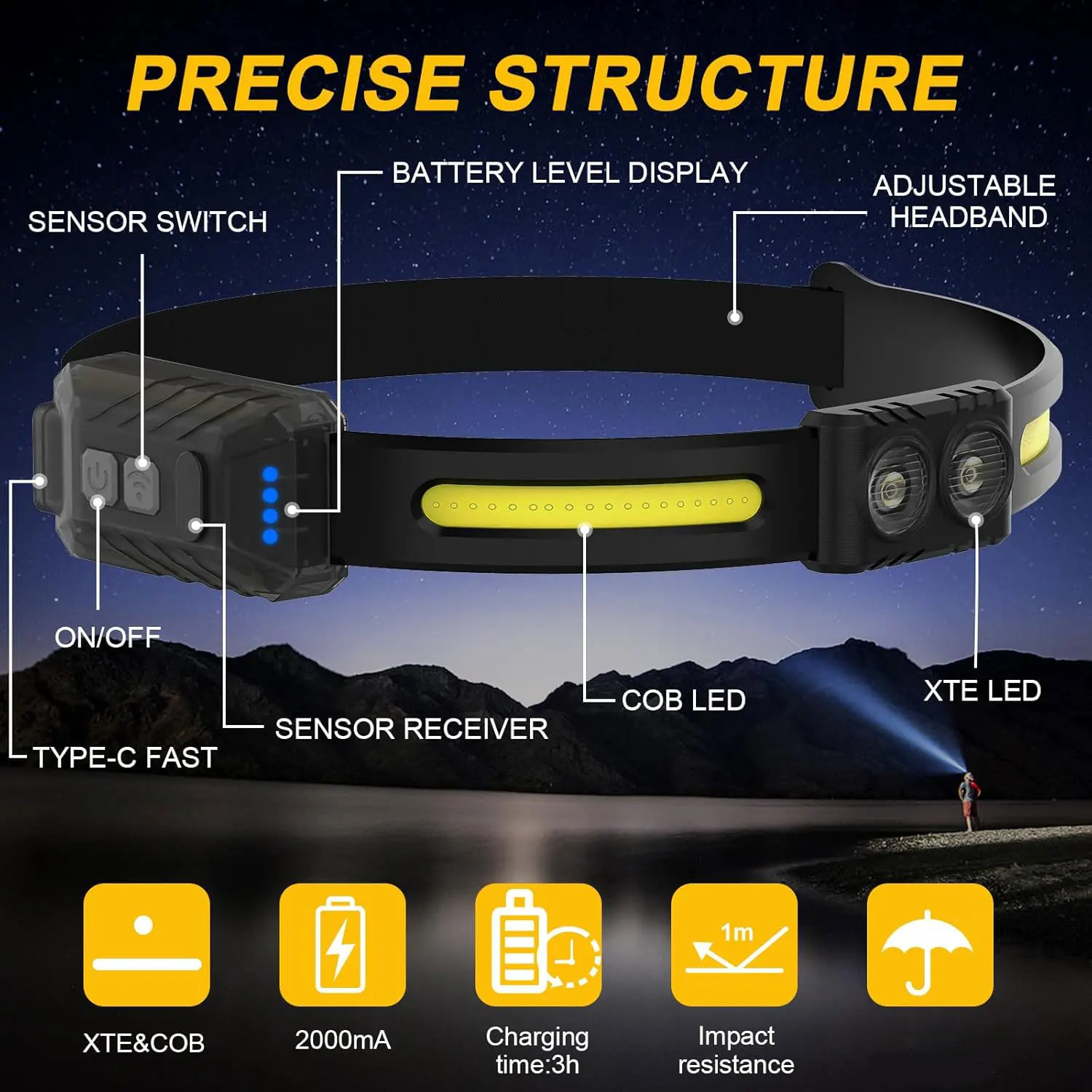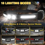 LED Headlamp Rechargeable 2 Pack, 230° Wide Beam Super Bright Head Lamp with Red Light and Motion Sensor, 6 Modes Headlamps for Hiking, Hunting, Fishing, Camping, or just for anything Outdoors or in the Dark.